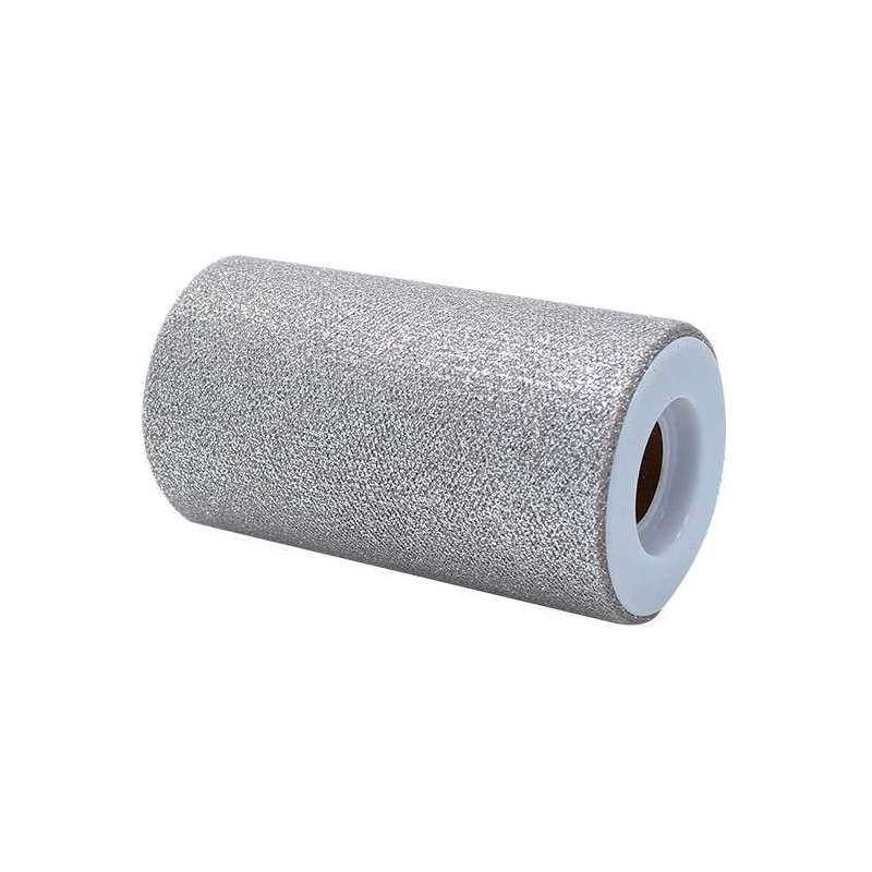 DECO TULLE 12,5 CM X 100 MT GLITTER ARGENTO