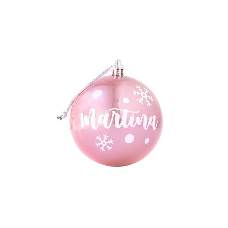 PALLINA DI NATALE ROSA IN VETRO PERSONALIZZATA 8 CM CON NOME IN VINILE