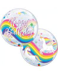 PALLONCINO BUBBLE 22" HAPPY BIRTHDAY UNICORNI ARCOBALENO E STELLE