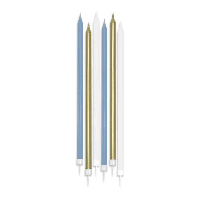 CANDELINE A MATITA LUNGHE CELESTE BIANCO ORO 6PZ