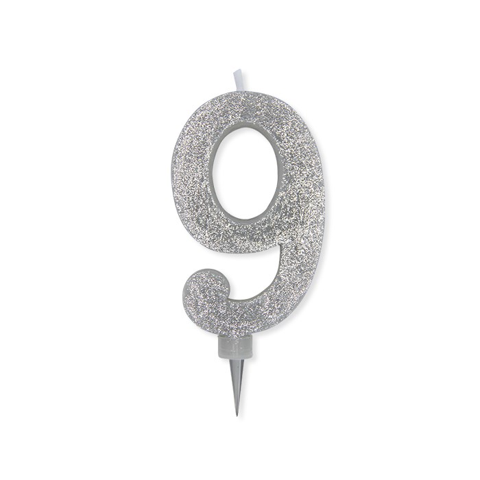 CANDELINA 12 CM GLITTER ARGENTO 9
