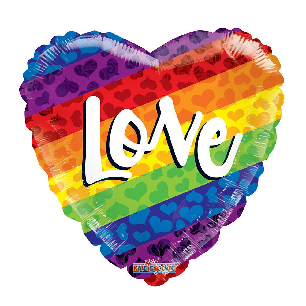 PALLONCINO MYLAR CUORE 18" ARCOBALENO CON SCRTTA LOVE BIANCA