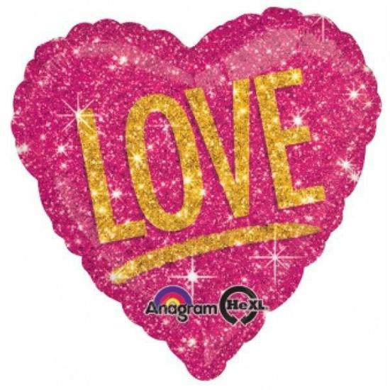 PALLONCINO MYLAR CUORE 18" LOVE FUCSIA ORO