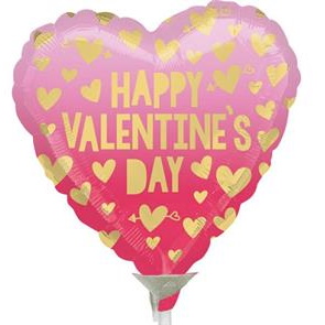 PALLONCINO MYLAR CUORE MINI SHAPE HAPPY VALENTINES DAY ROSA CON CUORI ORO