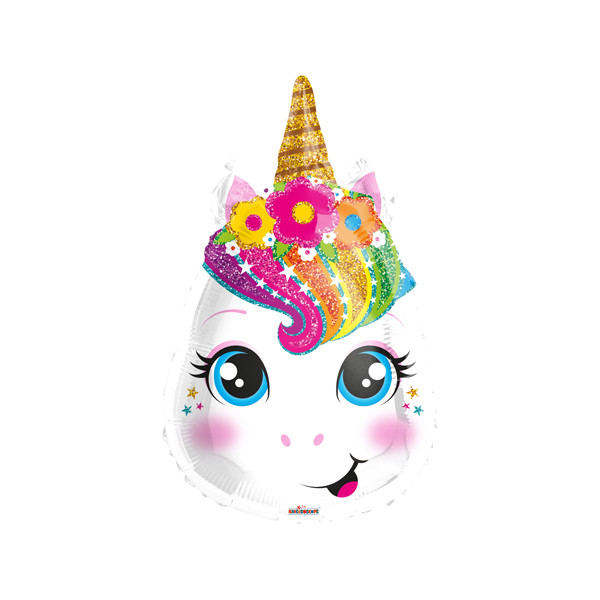 PALLONCINO MYLAR ANIMALI 18" UNICORNO TESTA GLITTER