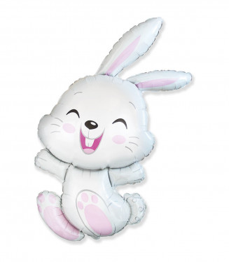 PALLONCINO MYLAR ANIMALI SUPER SHAPE INTERO CONIGLIO BIANCO CHE SALTA