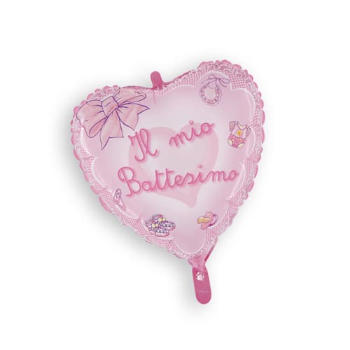 PALLONCINO MYLAR CUORE 18" ROSA IL MIO BATTESIMO CON FIOCCO