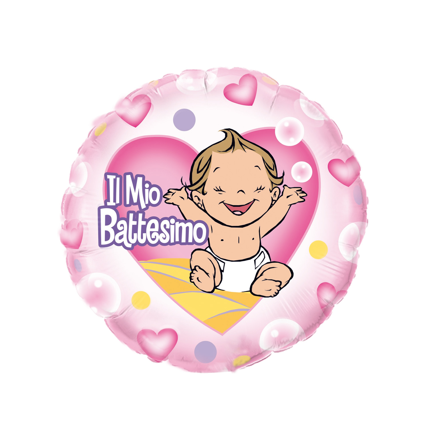 PALLONCINO MYLAR 18" IL MIO BATTESIMO ROSA CON BIMBA E CUORE