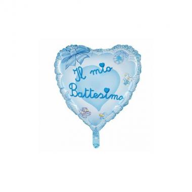 PALLONCINO MYLAR CUORE MINI SHAPE IL MIO BATTESIMO CON FIOCCO AZZURRO