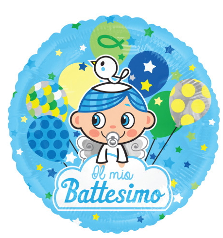 PALLONCINO MYLAR 18" IL MIO BATTESIMO CELESTE CON ANGIOLETTO E PALLONCINI