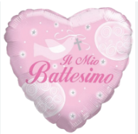 PALLONCINO MYLAR 18" BATTESIMO ROSA COLOMBA C/CROCE IN BECCO E STELLINE