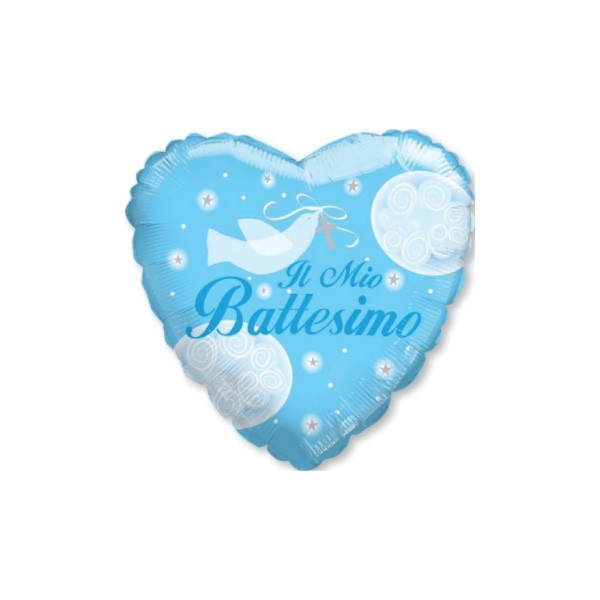 PALLONCINO MYLAR MINI SHAPE IL MIO BATTESIMO CELESTE COLOMBA C/CROCE SUL BECCO