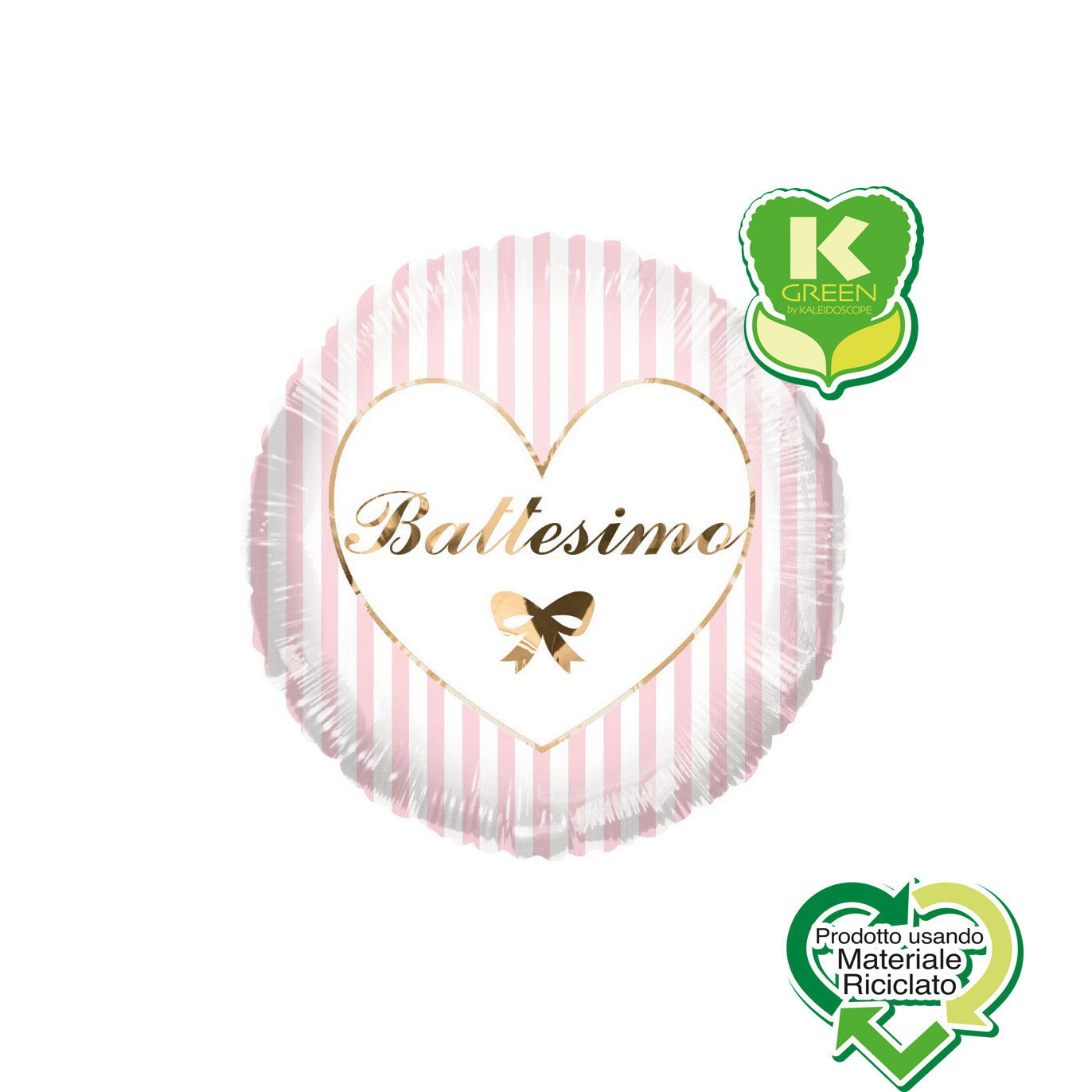 PALLONCINO MYLAR TONDO 18" BATTESIMO ROSA ORO CON STRISCE