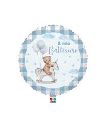 PALLONCINO MYLAR TONDO 18" IL MIO BATTESIMO CELESTE CAVALLINO A DONDOLO