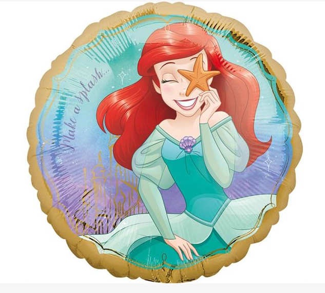 PALLONCINO PRINCIPESSE DISNEY MYLAR TONDO 18" ARIEL CON STELLA MARINA GOLD