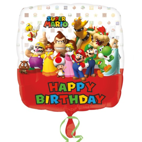 PALLONCINO SUPER MARIO MYLAR QUADRATO 18" HAPPY BIRTHDAY