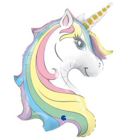 PALLONCINO MYLAR SUPER SHAPE TESTA UNICORNO COLORI PASTELLO