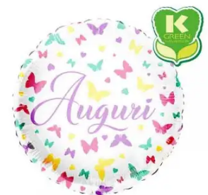 PALLONCINO MYLAR TONDO 18" AUGURI BIANCO FARFALLE E CUORI