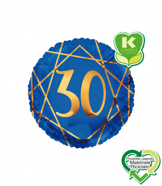 PALLONCINO MYLAR TONDO 18" 30 ANNI BLU NAVY RIGHE ORO