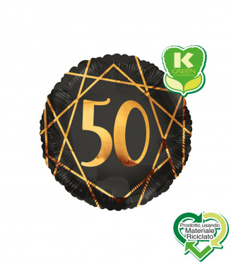 PALLONCINO MYLAR TONDO 18" 50 ANNI NERO RIGHE ORO