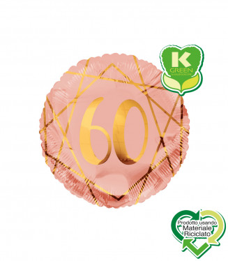 PALLONCINO MYLAR TONDO 18" 60 ANNI ROSE-GOLD RIGHE ORO