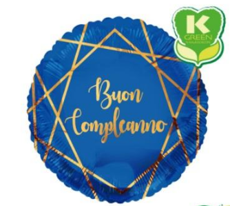 PALLONCINO MYLAR TONDO 18" BUON COMPLEANNO BLU RIGHE ORO