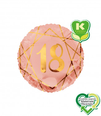 PALLONCINO MYLAR TONDO 18" 18 ANNI ROSE-GOLD RIGHE ORO