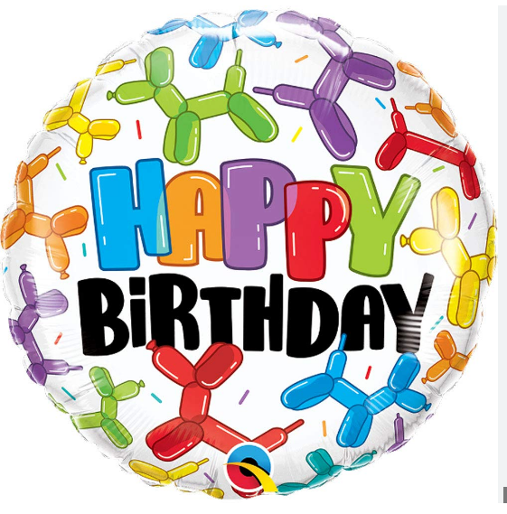 PALLONCINO MYLAR 18" HAPPY BIRTHDAY COLORATO CON CAGNOLINI MODELLABILI
