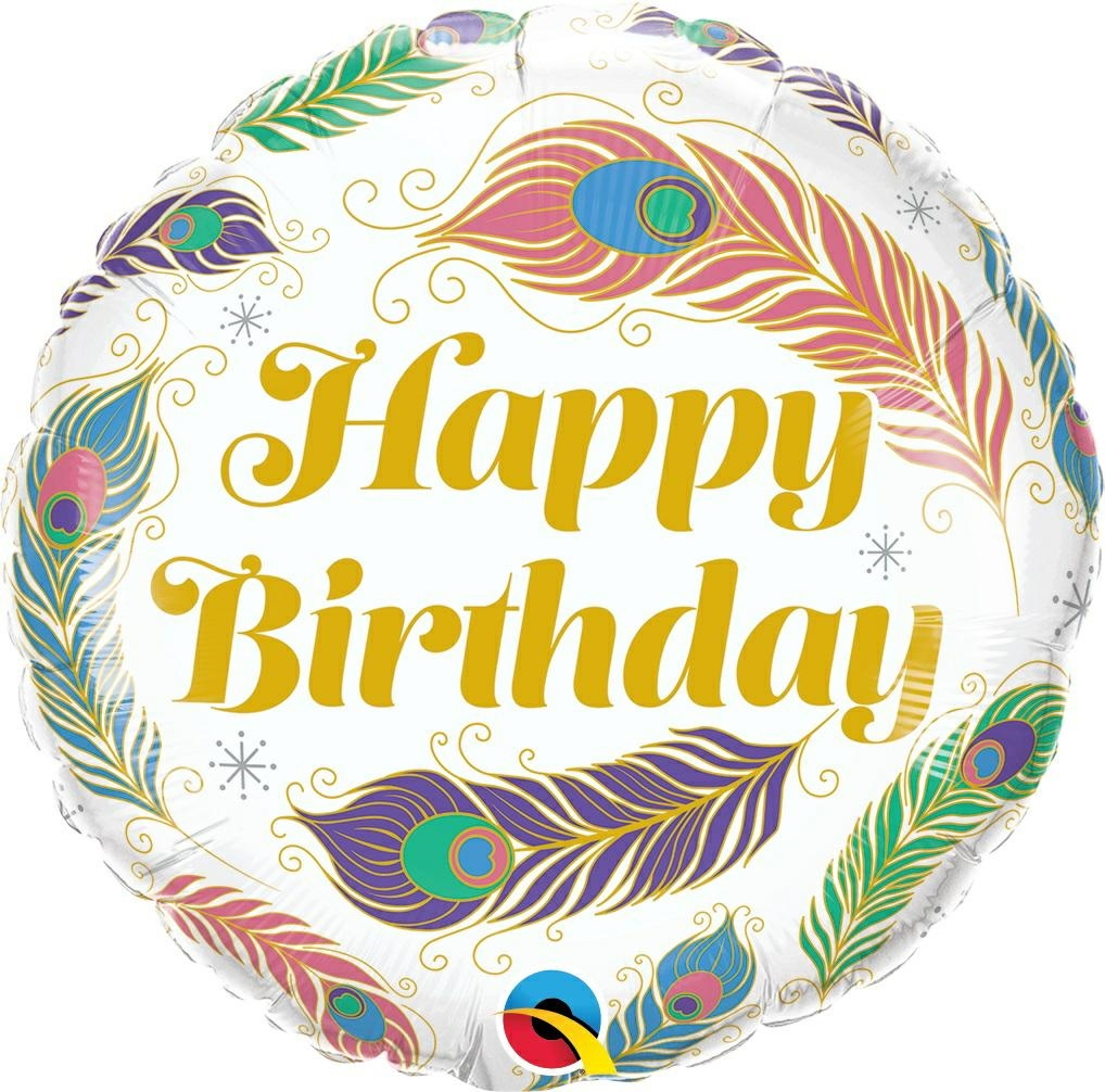 PALLONCINO MYLAR TONDO 18" HAPPY BIRTHDAY CON PIUME COLORATE