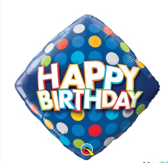 PALLONCINO MYLAR ROMBO 18" HAPPY BIRTHDAY BLU CON BOLLI COLORATI