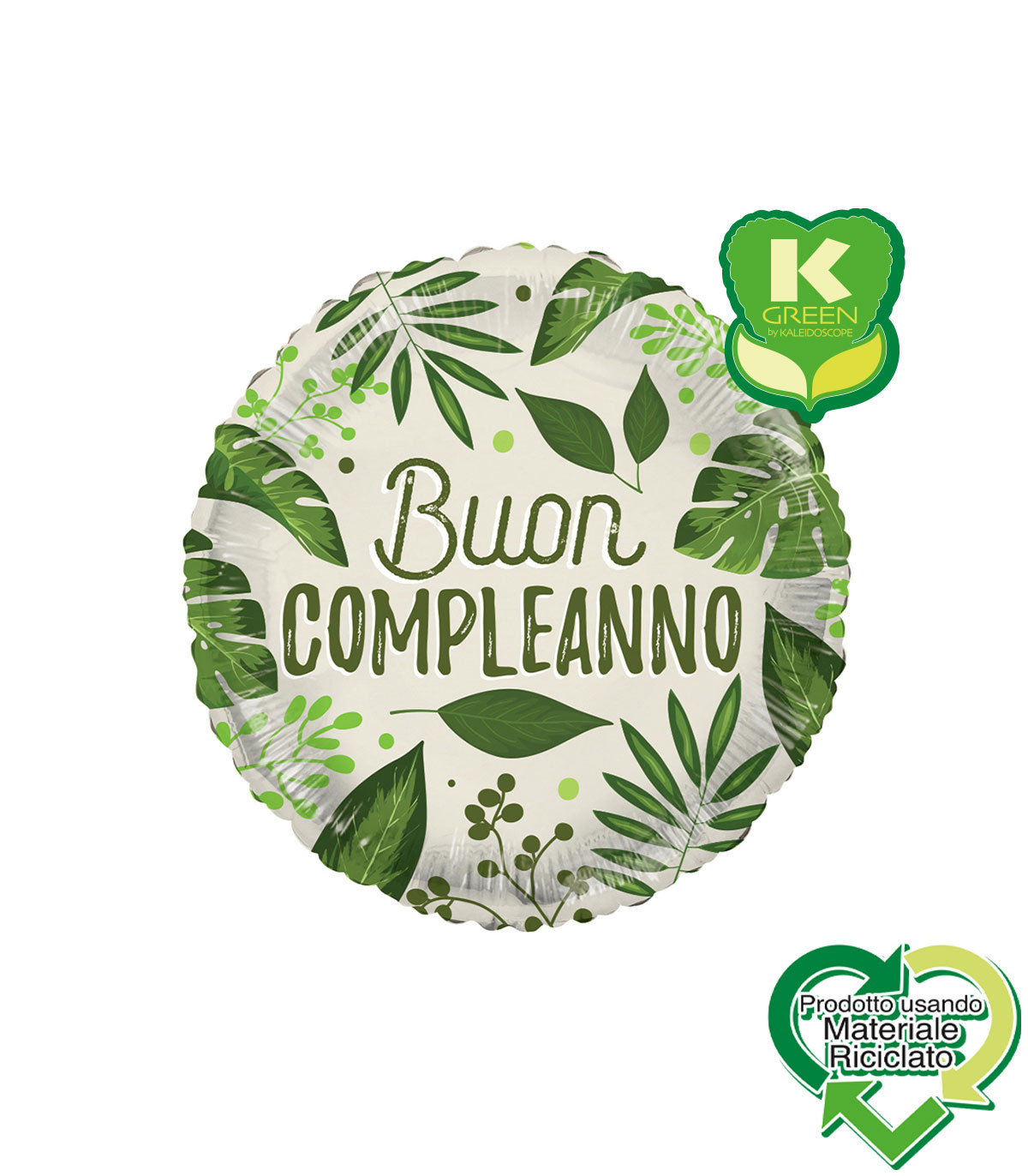 PALLONCINO MYLAR TONDO 18" FOGLIE VERDI COMPLEANNO