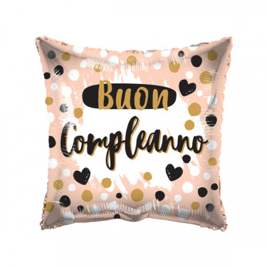 PALLONCINO MYLAR 18" BUON COMPLEANNO ROSE GOLD CON POIS E CUORI