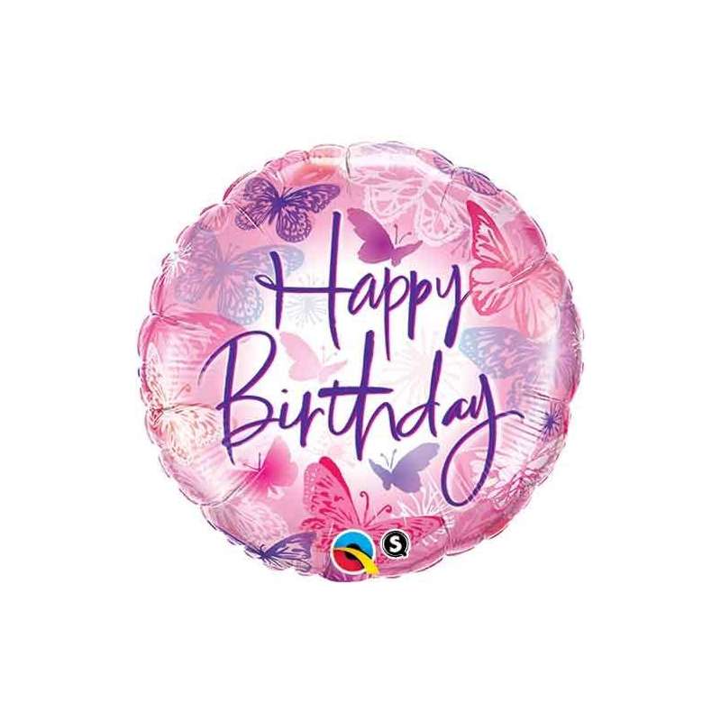 PALLONCINO MYLAR 18" HAPPY BIRTHDAY FARFALLE ROSA FUCSIA E VIOLA