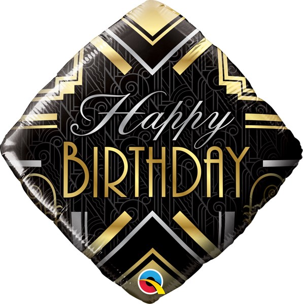 PALLONCINO MYLAR ROMBO 18" HAPPY BIRTHDAY NERO ORO ARGENTO