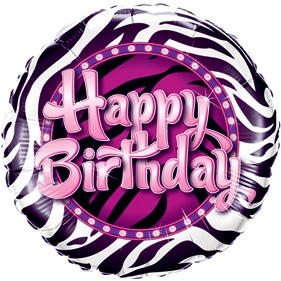 PALLONCINO MYLAR TONDO 18" HAPPY BIRTHDAY ZEBRATO E FUXIA