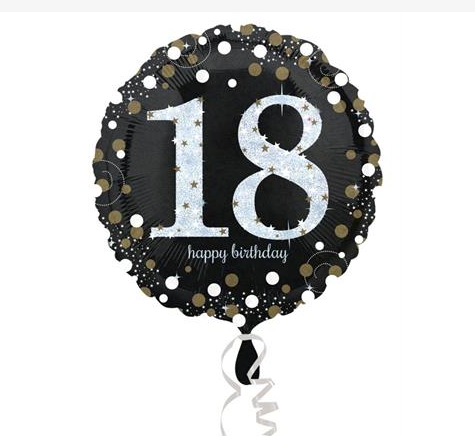 PALLONCINO MYLAR TONDO 18" 18 ANNI ANAGRAM NERO ORO ARGENTO