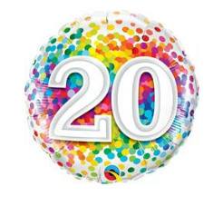 PALLONCINO MYLAR 18" 20 ANNI RAINBOW CONFETTI