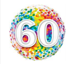 PALLONCINO MYLAR TONDO 18" 60 ANNI RAINBOW CONFETTI