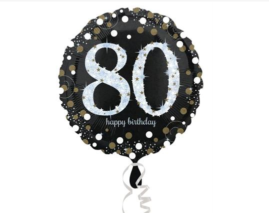 PALLONCINO MYLAR TONDO 18" 80 ANNI ANAGRAM NERO ORO ARGENTO