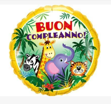 PALLONCINO MYLAR ANIMALI TONDO 18" BUON COMPLEANNO CON ANIMALI DELLA GIUNGLA
