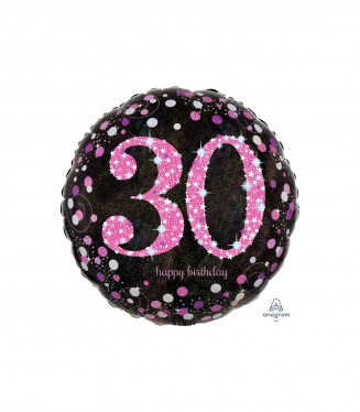 PALLONCINO MYLAR TONDO 18" 30 ANNI ANAGRAM NERO FUCSIA