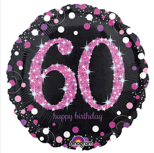 PALLONCINO MYLAR TONDO 18" 60 ANNI ANAGRAM NERO FUCSIA