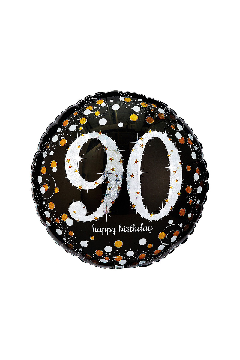 PALLONCINO MYLAR TONDO 18" 90 ANNI ANAGRAM NERO ORO ARGENTO