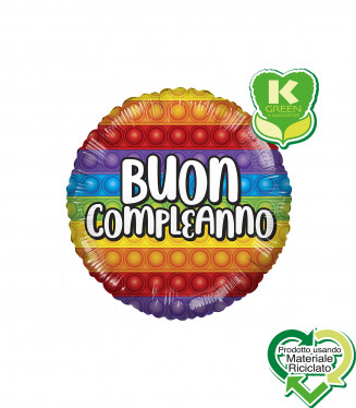 PALLONCINO MYLAR TONDO 18" ARCOBALENO POP IT BUON COMPLEANNO