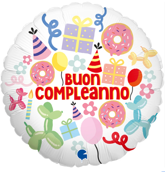 PALLONCINO MYLAR TONDO 18" BUON COMPLEANNO CANDY REGALI E CANI