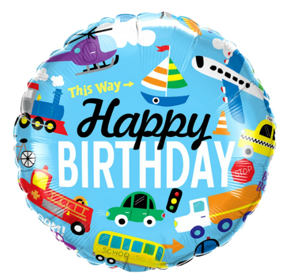 PALLONCINO MYLAR TONDO 18" HAPPY BIRTHDAY CON MEZZI
