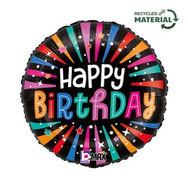 PALLONCINO MYLAR TONDO 18" HAPPY BIRTHDAY SFONDO NERO COLORATO E STELLINE