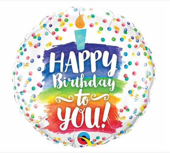 PALLONCINO MYLAR TONDO 18" HAPPY BIRTHDAY TO YOU TORTA ARCOBALENO CON CANDELINA