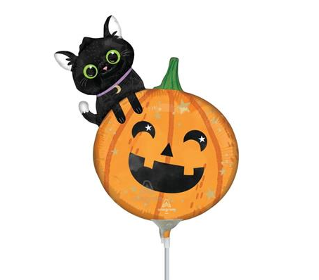 PALLONCINO MYLAR HALLOWEEN MINI SHAPE ZUCCA CON GATTINO