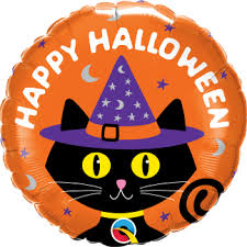 PALLONCINO MYLAR HALLOWEEN TONDO 18" HAPPY HALLOWEEN GATTINO ARANCIONE